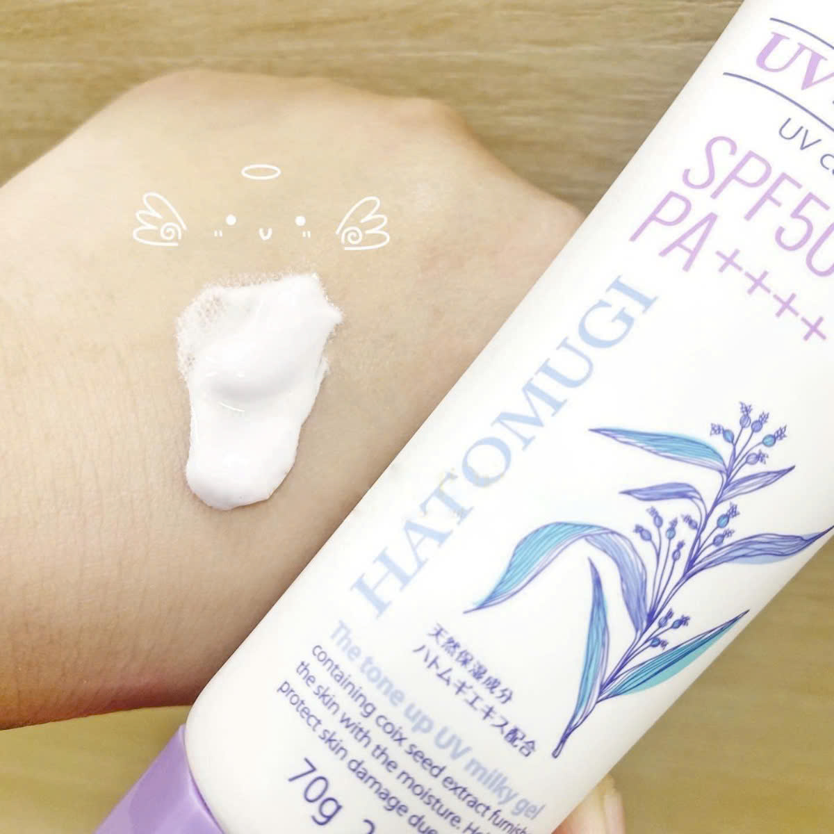 Làn da sau sinh nhạy cảm hơn với ánh nắng. Sử dụng kem chống nắng nâng tone như Kem chống nắng Hatomugi để bảo vệ da khỏi tia UV, đồng thời dưỡng ẩm và làm sáng da hiệu quả.
